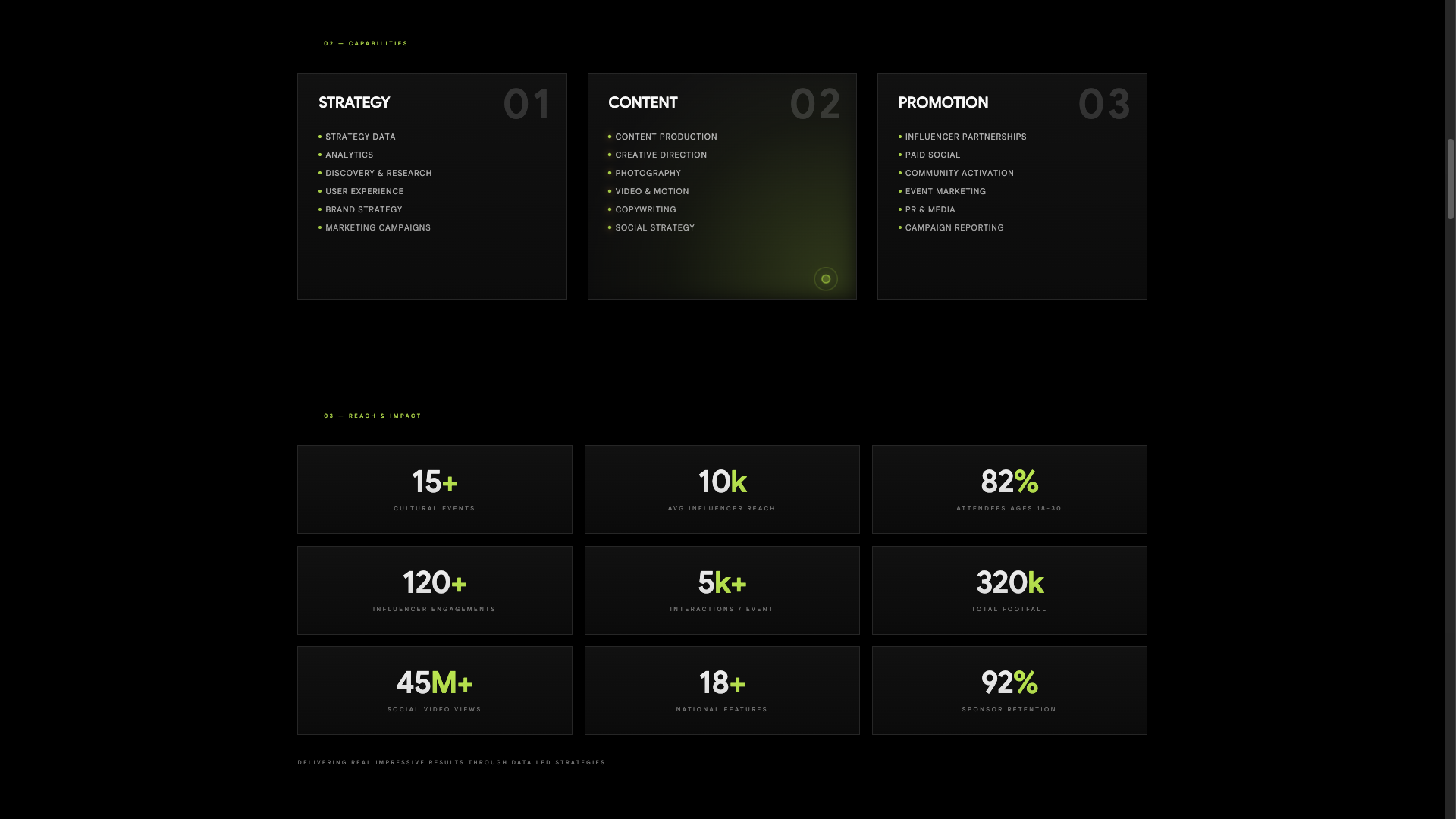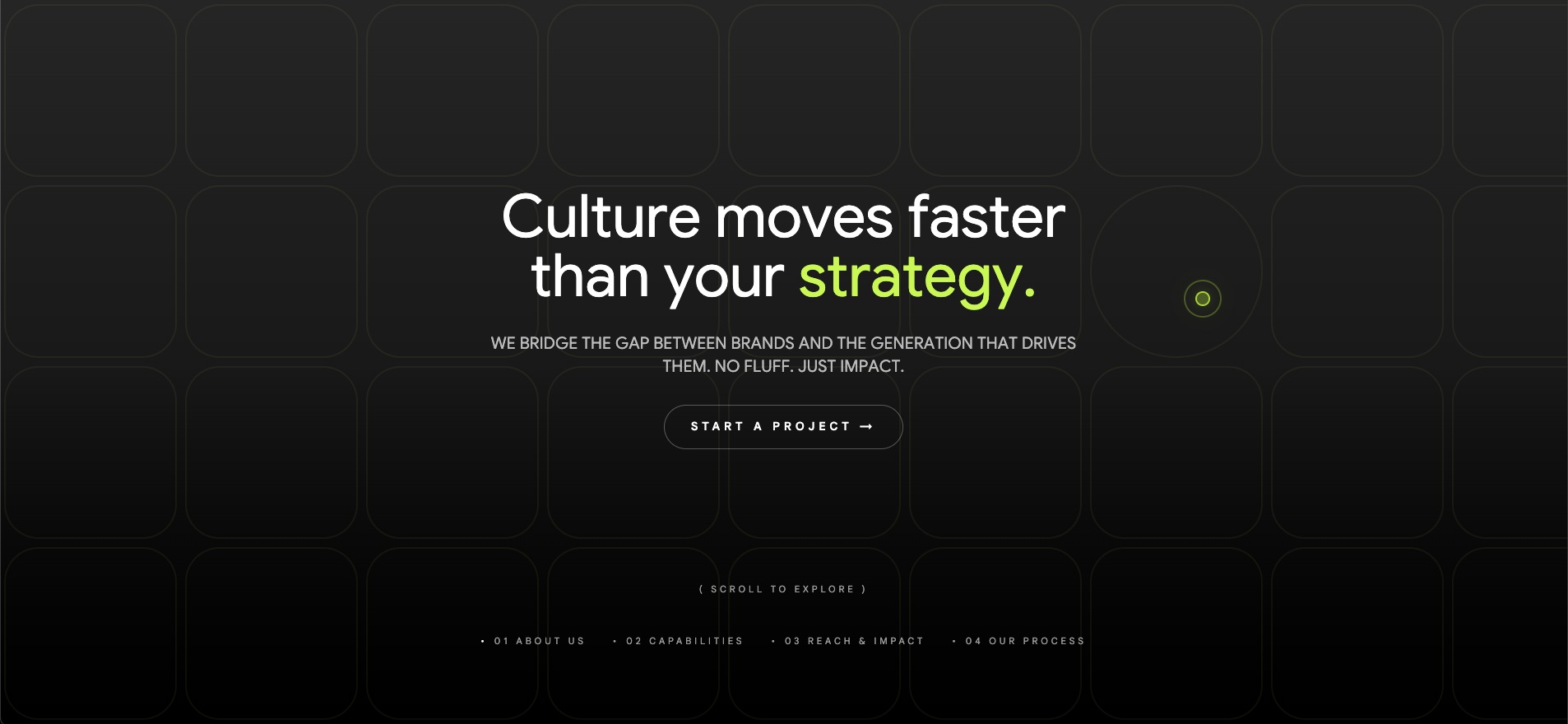WE CRAFT STRATEGIC, CREATIVE SOLUTIONS THAT COMBINE SMART IDEAS WITH STUNNING, FUNCTIONAL DESIGN. BY OBSESSING OVER THE DETAILS, WE INSPIRE ACTION AND DELIVER MEASURABLE RESULTS, EMPOWERING BRANDS TO THRIVE IN A DYNAMIC, EVER-EVOLVING MARKETPLACE.