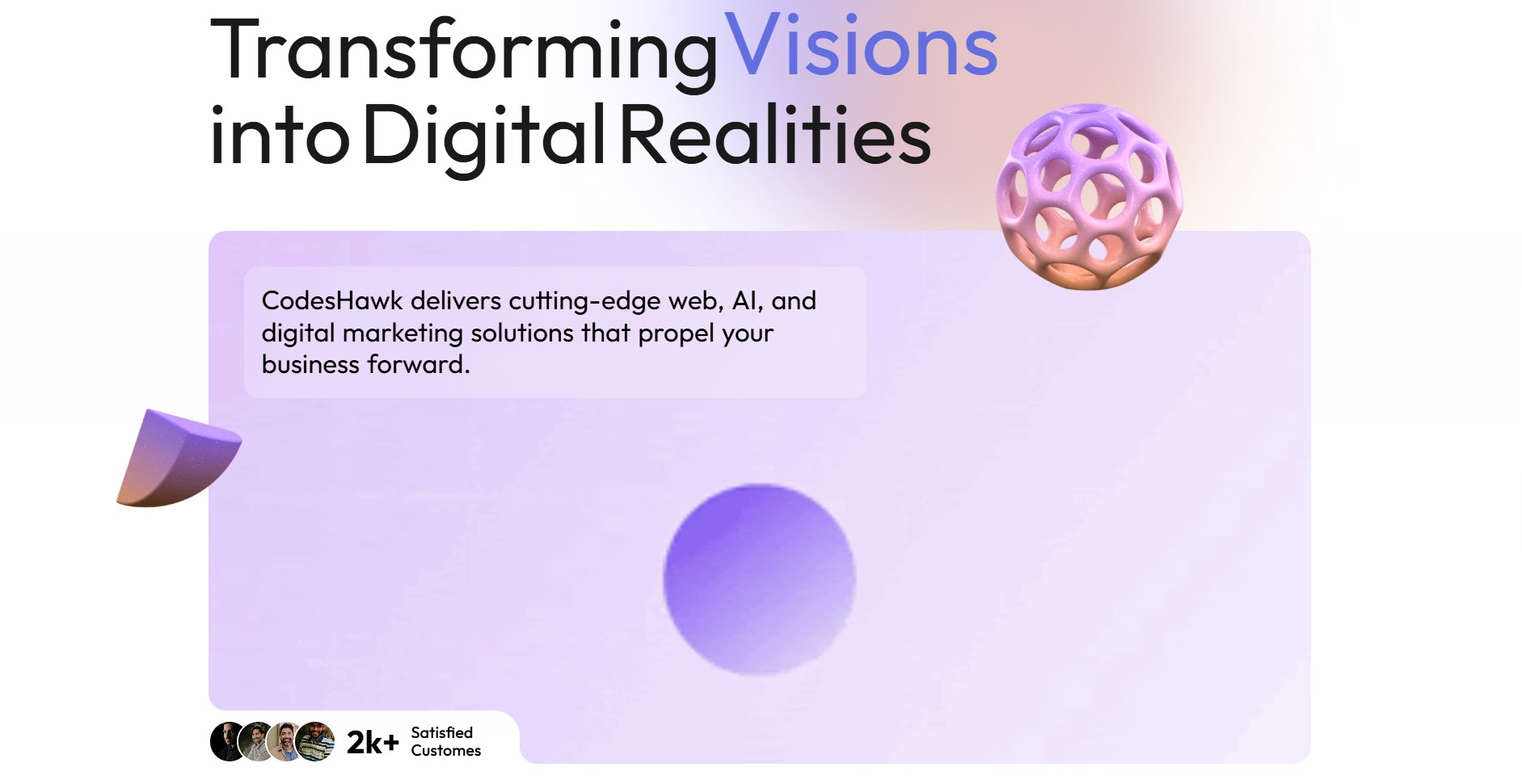 CodesHawk delivers cutting-edge web, AI, and digital marketing solutions to drive your business forward. We also offer expert web and mobile software engineering, along with SEO services to enhance your online presence, attract more traffic, and boost conversions. Trust us to help you achieve digital success.